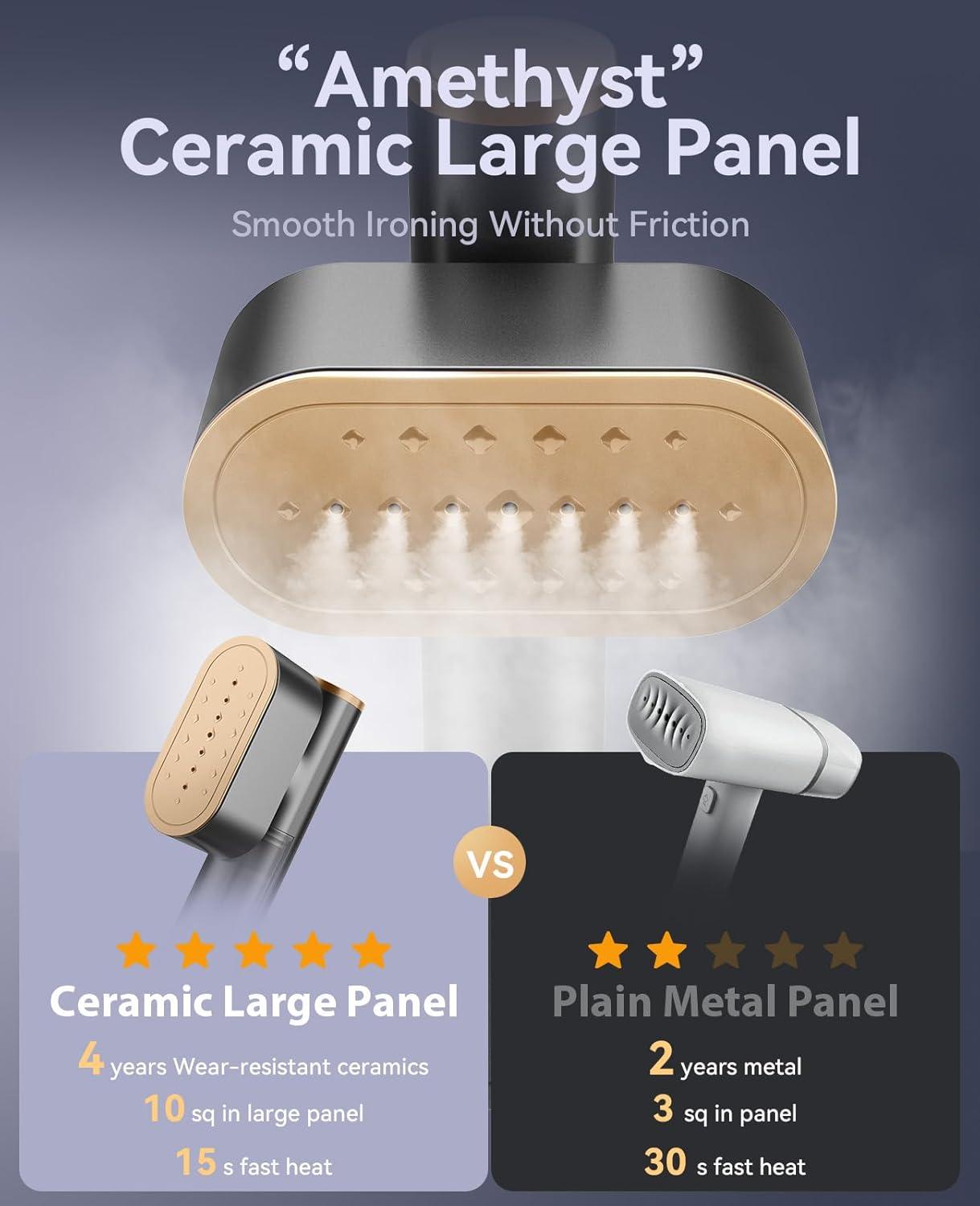 Jack & Rose Travel Steamer for Clothes,100-220V Portable Iron,15s Heat Up,Steamer & Iron 2 In 1, Travel Size,Large Ceramic Heat Panel,for Global & Europe(Black)